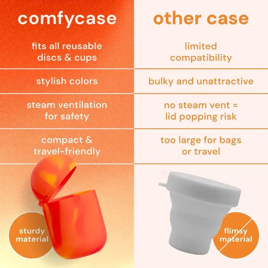 Universelt designet for å vaske og sterilisere alle menstruasjonskopper eller -disker, gir ComfyCase fleksibilitet og enkelhet for alle brukere – uansett merke eller størrelse på koppen eller disken. - Holdbar og sølefri oppbevaring: